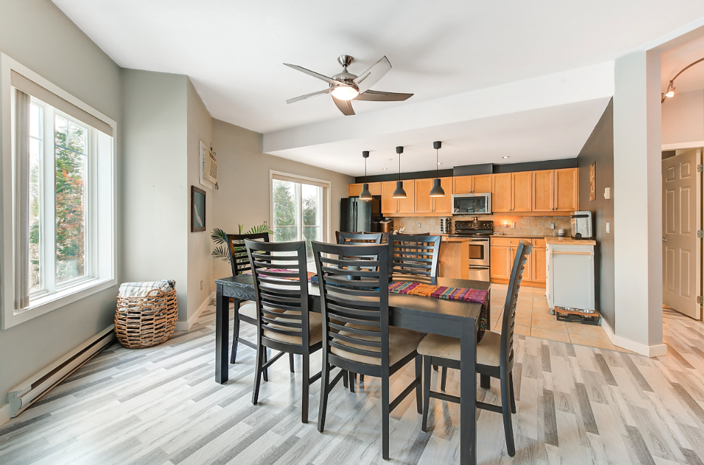 Step onto the balcony for views of the Shannon Lake area, framed by mountains and trees—a peaceful setting for quiet moments. The building’s architecture integrates well with its surroundings, providing a welcoming environment along with ample parking for residents and guests.