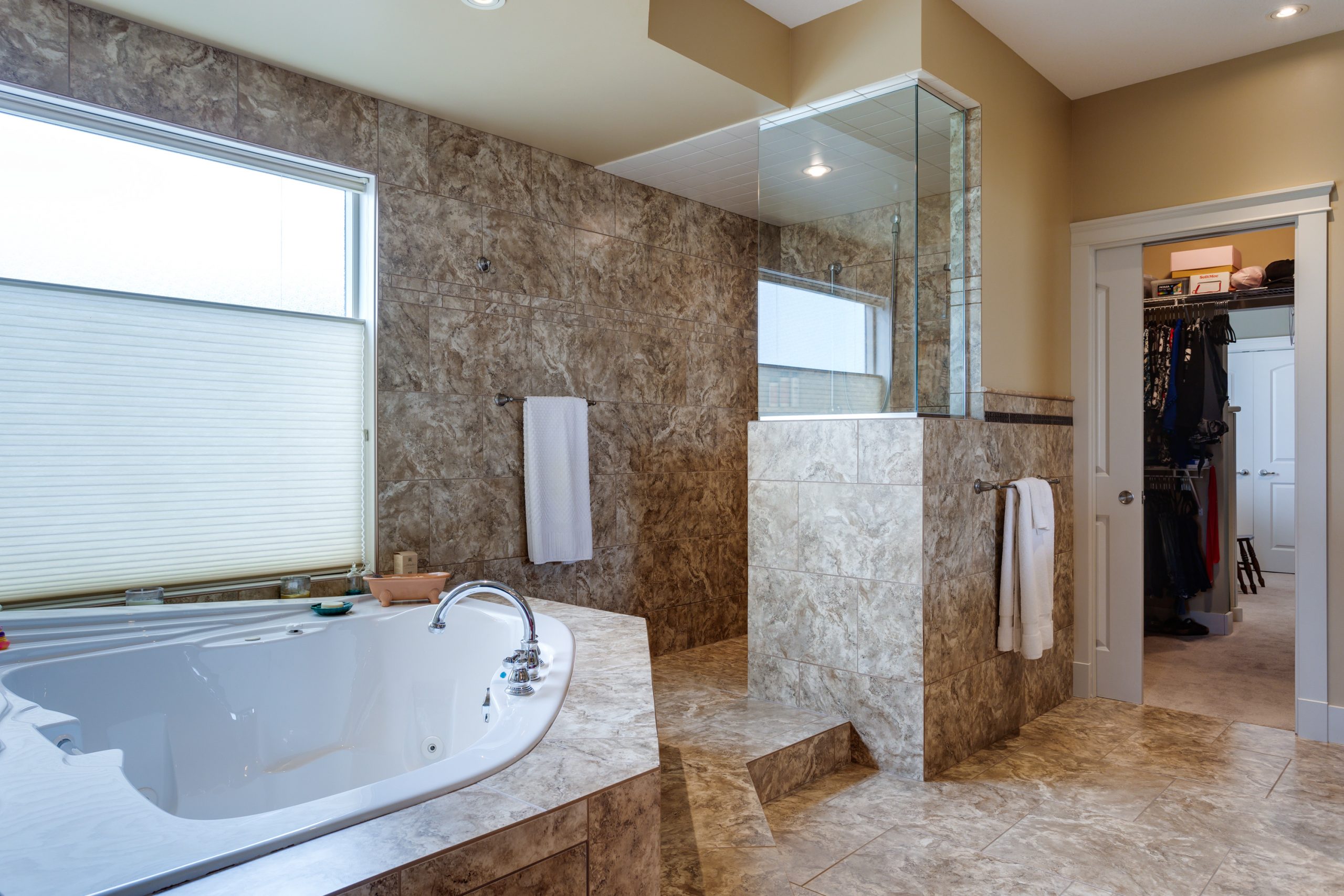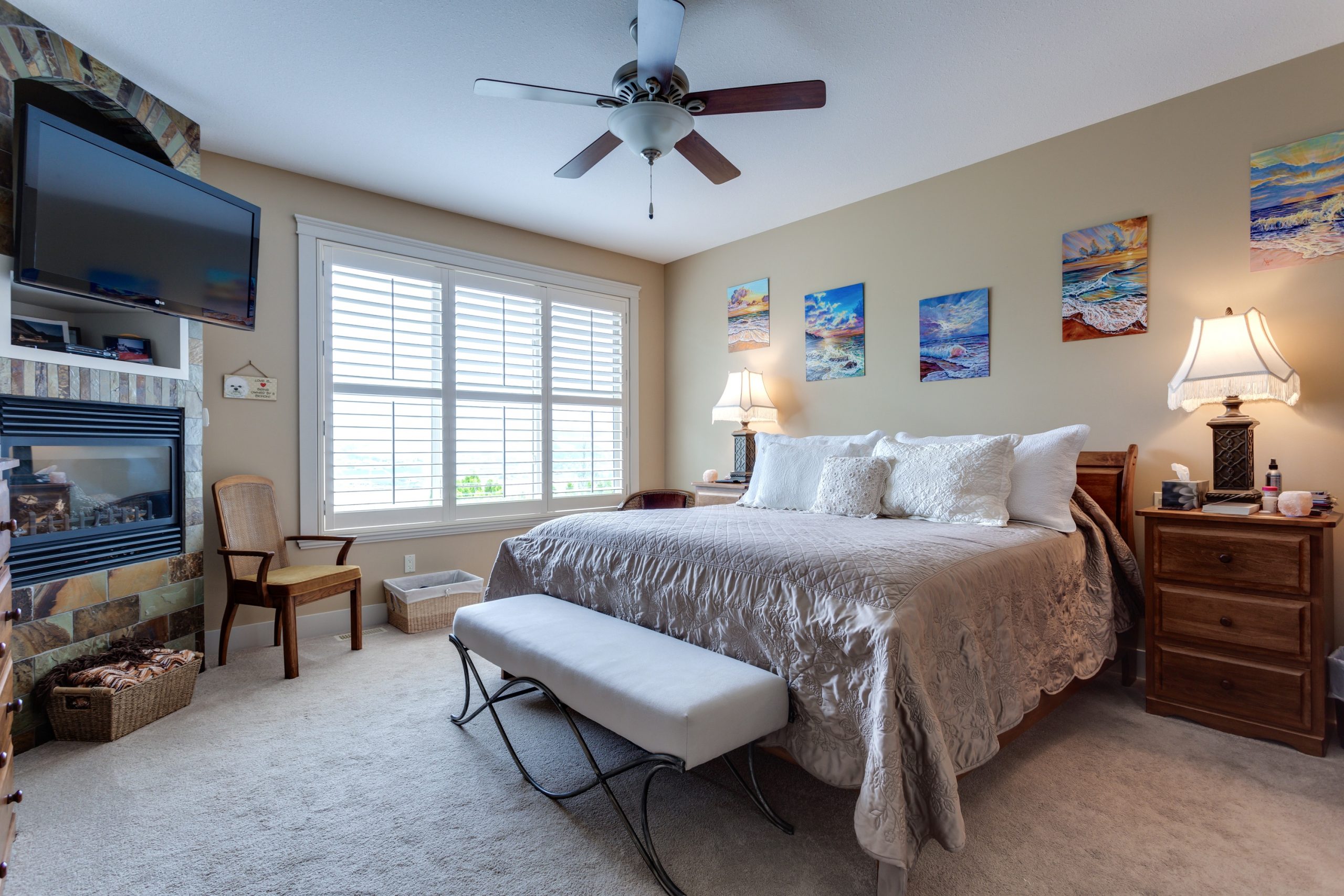 The master suite is designed for luxury with a gas fireplace, double walk-in closet and a 5-piece en-suite featuring a corner soaker tub.